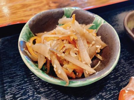 Quand vous entrez Izakaya et vous assiez à votre table, on vous amène un petit plat qui s’appelle “otoshi“. C’est une habitude dans Izakaya. Et la plupart du temps, ce otoshi n’est pas gratuit et on ne peut pas le refuser, car le prix de la table est inclus dans ce otoshi. Avec otoshi, vous pouvez manger sans attendre longtemps (c’est une avantage si vous avaz trop faim, n’est ce pas? ) et pouvez savoir la qualité générale du repas de ce Izakaya avant commander des autres nourriture.
